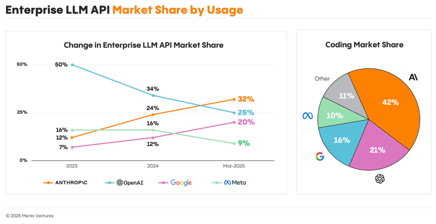The accuracy of this report warrants scrutiny. Menlo has a vested interest in this narrative as they have participated in Anthropic's Series C in May 2023, led Anthropic's Series D in January 2024 and tripled down on Anthropic's Series E in March 2025 as well as financed the Anthology fund, a $100M initiative to support startups innovating broadly with Anthropic technology. Their report states: